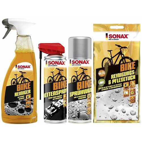 Wirksame Pflegeprodukte für Ihre Fahrradpflege. Mit hochwertigen Produkten von SONAX decken Sie alles ab was Sie für Ihre Wartung benötigen um zu reinigen, schützen & zum schmieren. Auch speziell für E-Bikes geeignet.