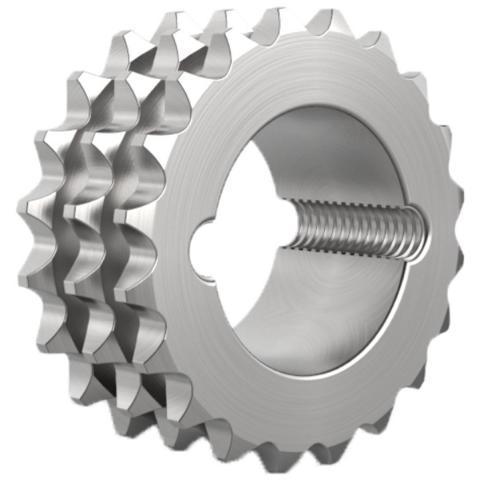 Wichtige Maschinenelemente wie Rollenketten übertragen über Kettenräder und Kettenradscheiben Ihre Antriebsleistung und werden passend zum Profil der eingesetzten Rollenkette gewählt. Die Wellen- Scheiben- oder Rad Verbindung erfolgt über eine Taperspannbuchse. Rollenketten werden in den verschiedensten Anwendungsgebieten wie dem allgemeinen Maschinen- & Anlagenbau, der Fördertechnik, der Lagerlogistik, Landmaschinen, der Sägeindustrie und vielen weiteren industriellen Anlagen eingesetzt als Antriebselement.
