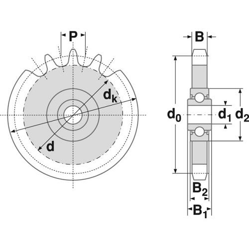 Kettenspannrad 08 B-1 Z=16 mit Kugellager Einbaufertig (1/2 x 5/16)