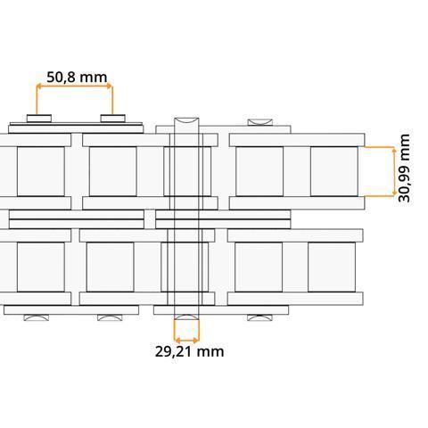 Eurochain ist eine Marke der Firma Iwis und für eine Vielzahl von unterschiedlichen Anwendungen geeignet zu einem top Preis-Leistungs-Verhältnis. Eurochain Rollenketten entsprechen den hohen Anforderungen der ISO 9001 Vorgaben und haben eine deutlich verbesserte Dauerfestigkeit und Bruchkraft, die über den Mindest-DIN Werten der ISO 606 liegen. Rollenketten nach DIN 8187 / ISO 606 allgemein, werden zur mechanischen Übertragung von Kräften über Kettenräder und Kettenscheiben von einer Welle zur anderen Welle eingesetzt im allgemeinen Maschinenbau sowie in der Fördertechnik und sind für den universellen Einsatz gedacht.