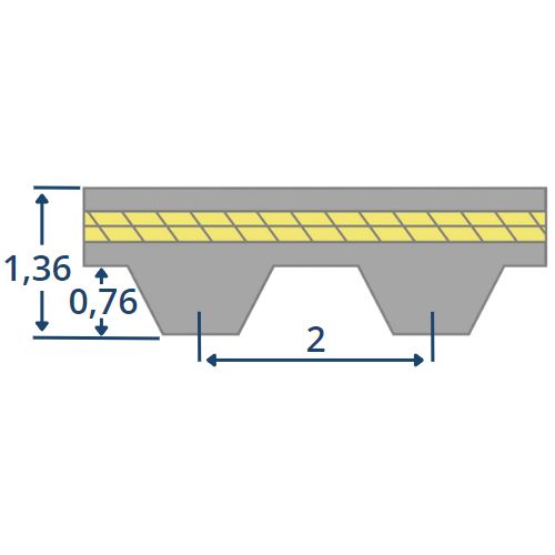 Neopren Zahnriemen mit einer trapezförmigen Verzahnung zeichnen sich durch eine hohe Zugfestigkeit sowie Biegewilligkeit aus. Seine Anwendung findet der Riemen heutzutage in beispielsweise kleinen Antrieben wie einem 3D Drucker bis hin zu großen Antrieben in einer Pumpe o.ä. Gefertigt wird der Riemen aus dem Grundmaterial Neoprene und einem Glasfaserzugstrang. Zahnseitig wird der Riemen über ein hochfestes Nylongewebe geschützt. Da die Riemen von einem Wickel in der Breite geschnitten werden, können nahezu alle Breiten des Riemens realisiert werden auf Kundenwunsch.
