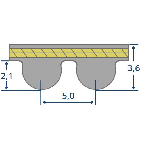 - Riemenlänge: Meterware (max. 50 oder 100 Mtr. Rolle)