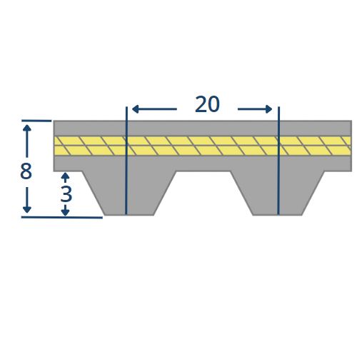 - Riemenlänge: Meterware (max. 50 oder 100 Mtr. Rolle)